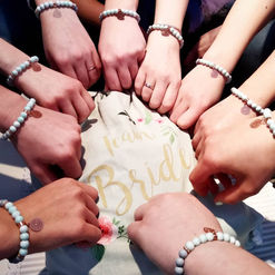 Ich begrüße euch nach Terminabsprache in meinem LE CLOU-Atelier und serviere euch Getränke und Snacks. Gemeinsam werden wir während eures Aufenthalts zwei individuelle Perlen-Armbänder gestalten, welche ihr im Anschluss mitnehmen dürft. Dabei dürft ihr aus der kompletten Materialsammlung vor Ort wählen und euch inspirieren lassen.